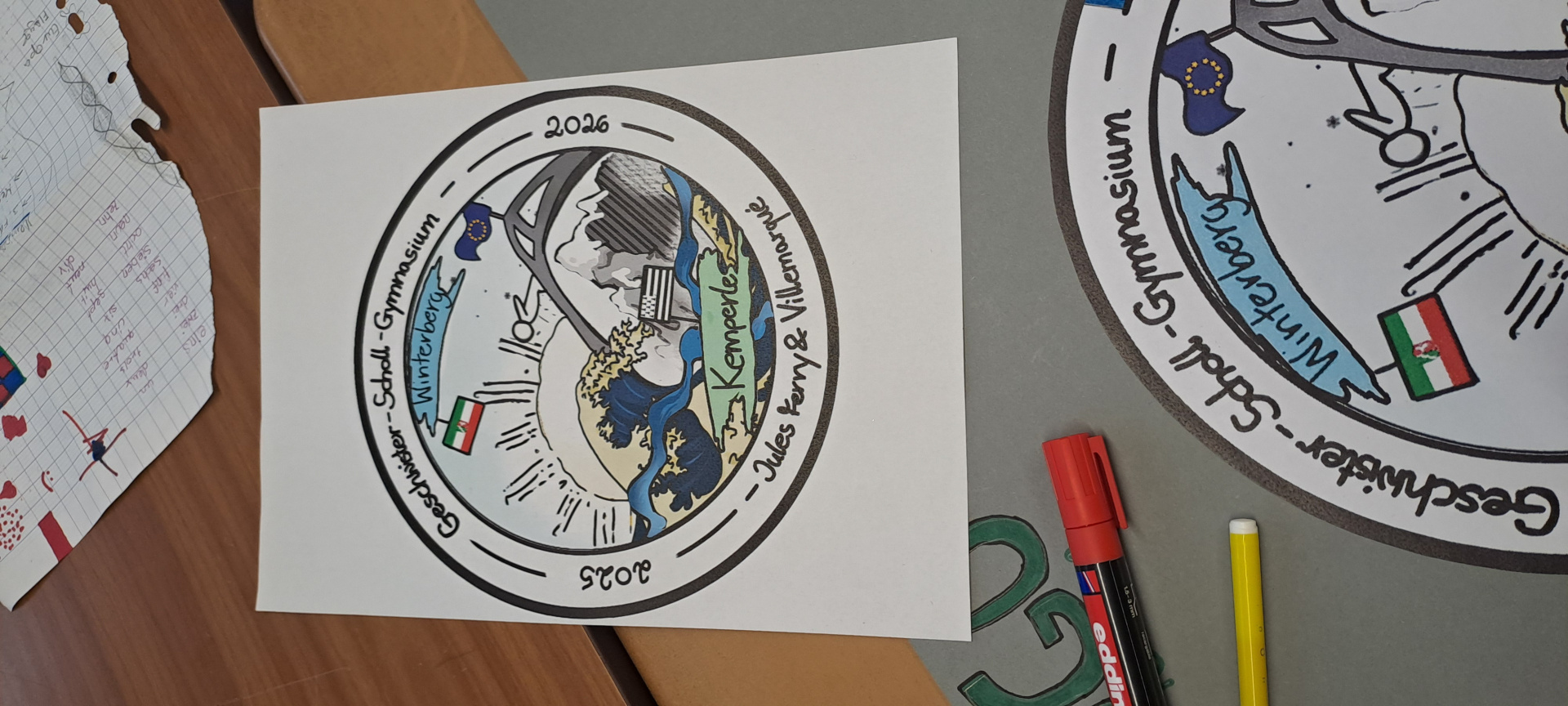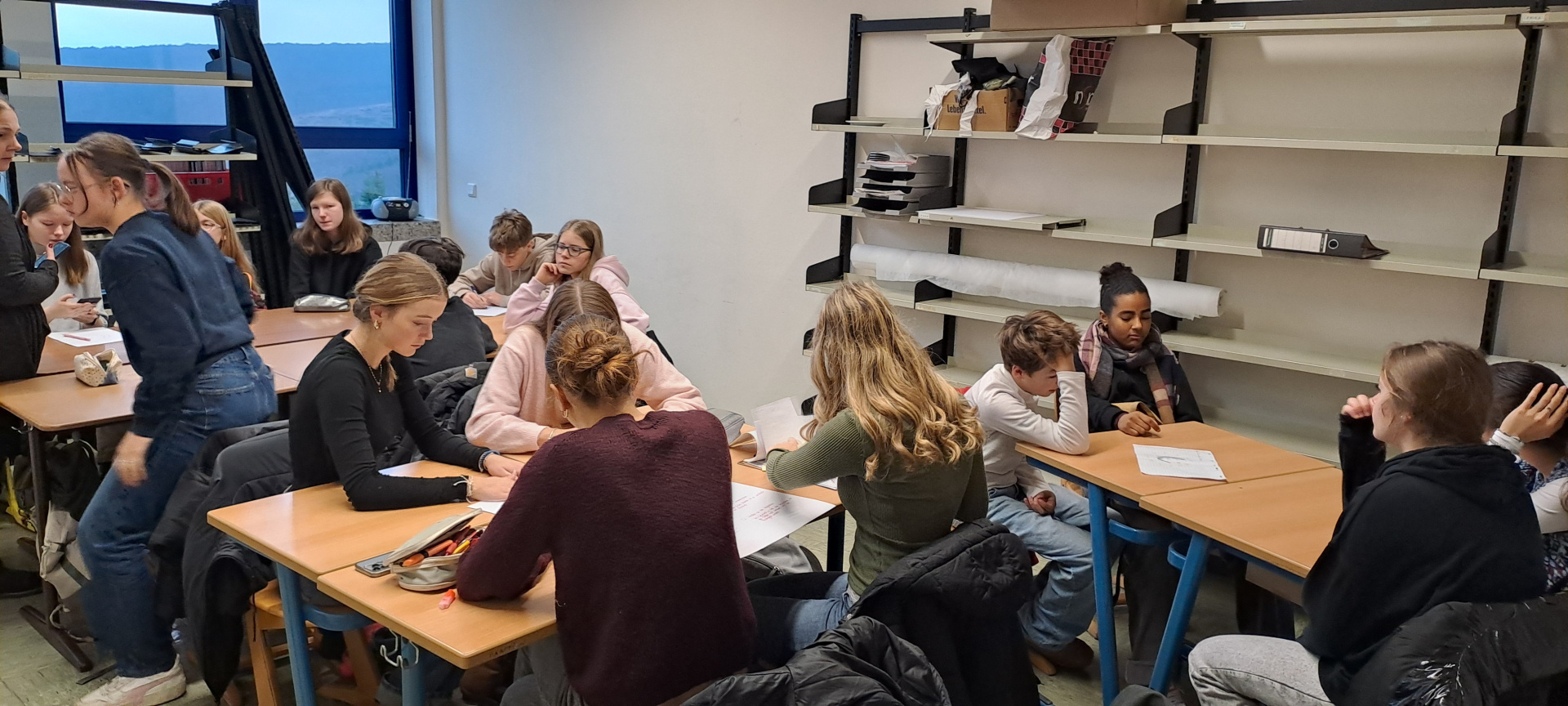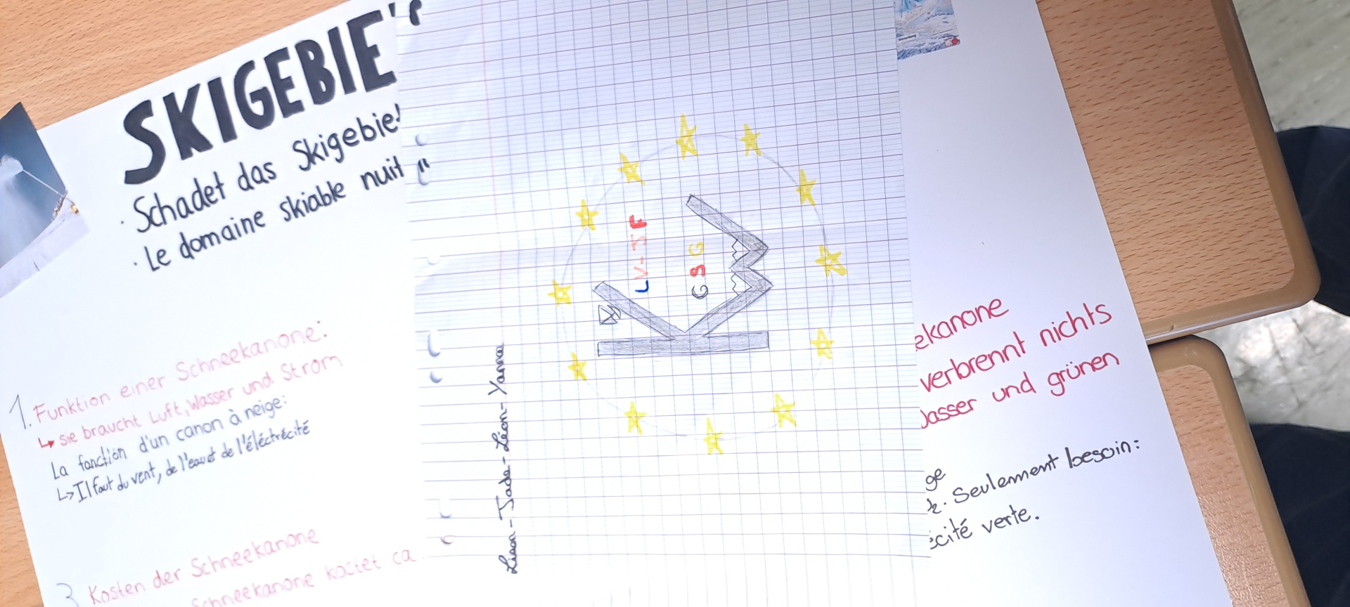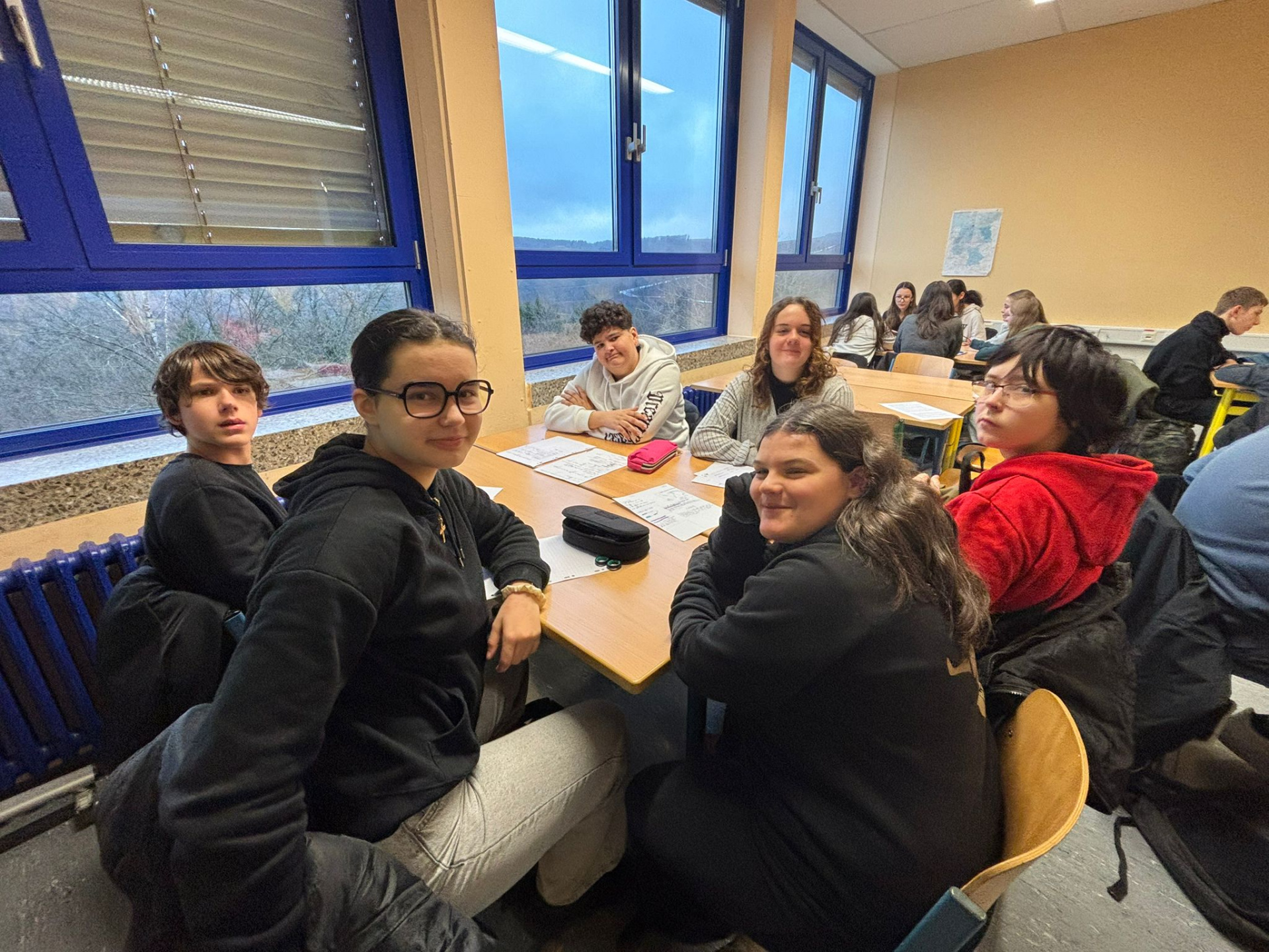Une journée qui débute avec un goût de « dernière ». Ils ont tous à coeur d’en profiter. Le programme de la matinée est la réalisation des affiches pour l’exposition « Winterberg, Winter, Berge, Tourismus, Wirtschaft und Umwelt », le logo de l’échange franco-allemand et un imagier en 4 langues « Französisch, Deutsch, Bretonisch und Englisch » pour les plus jeunes.