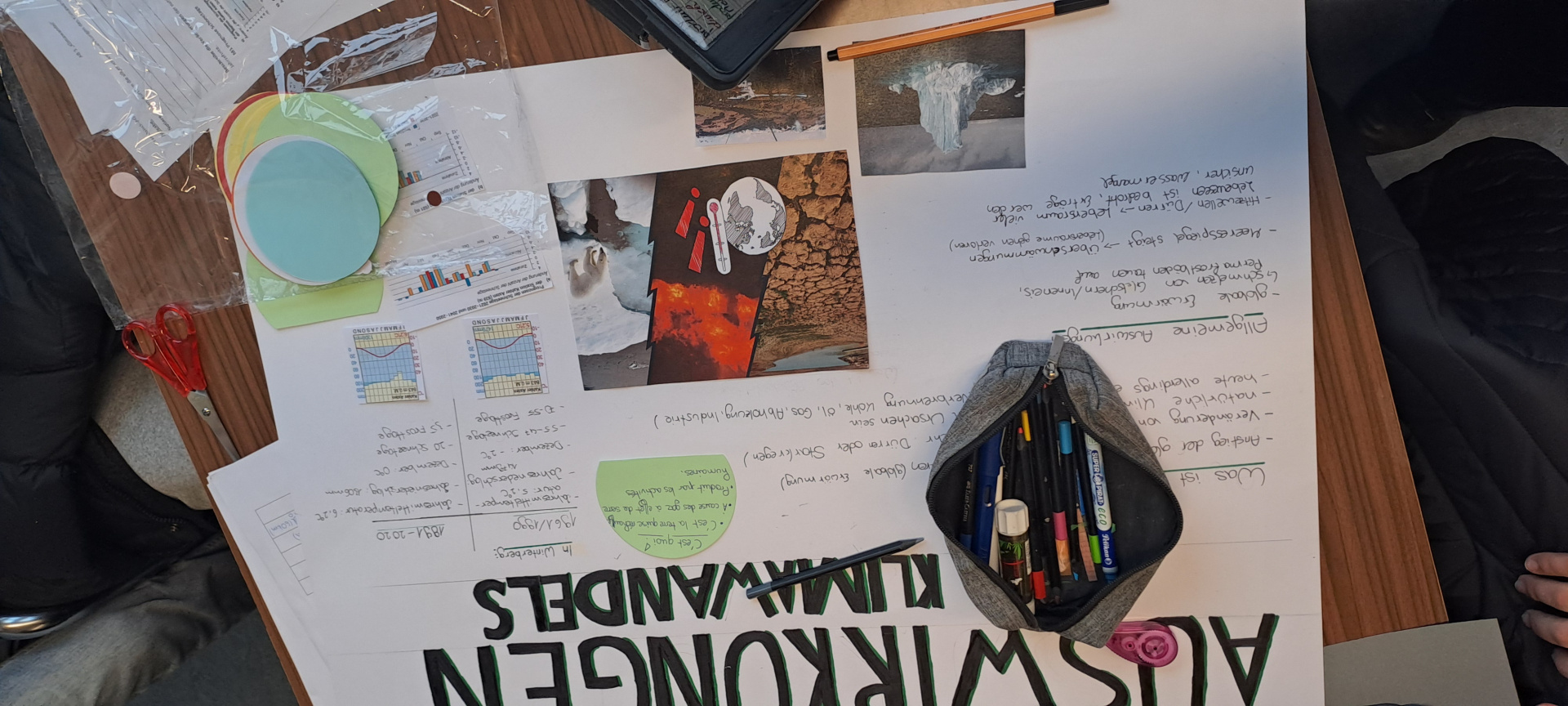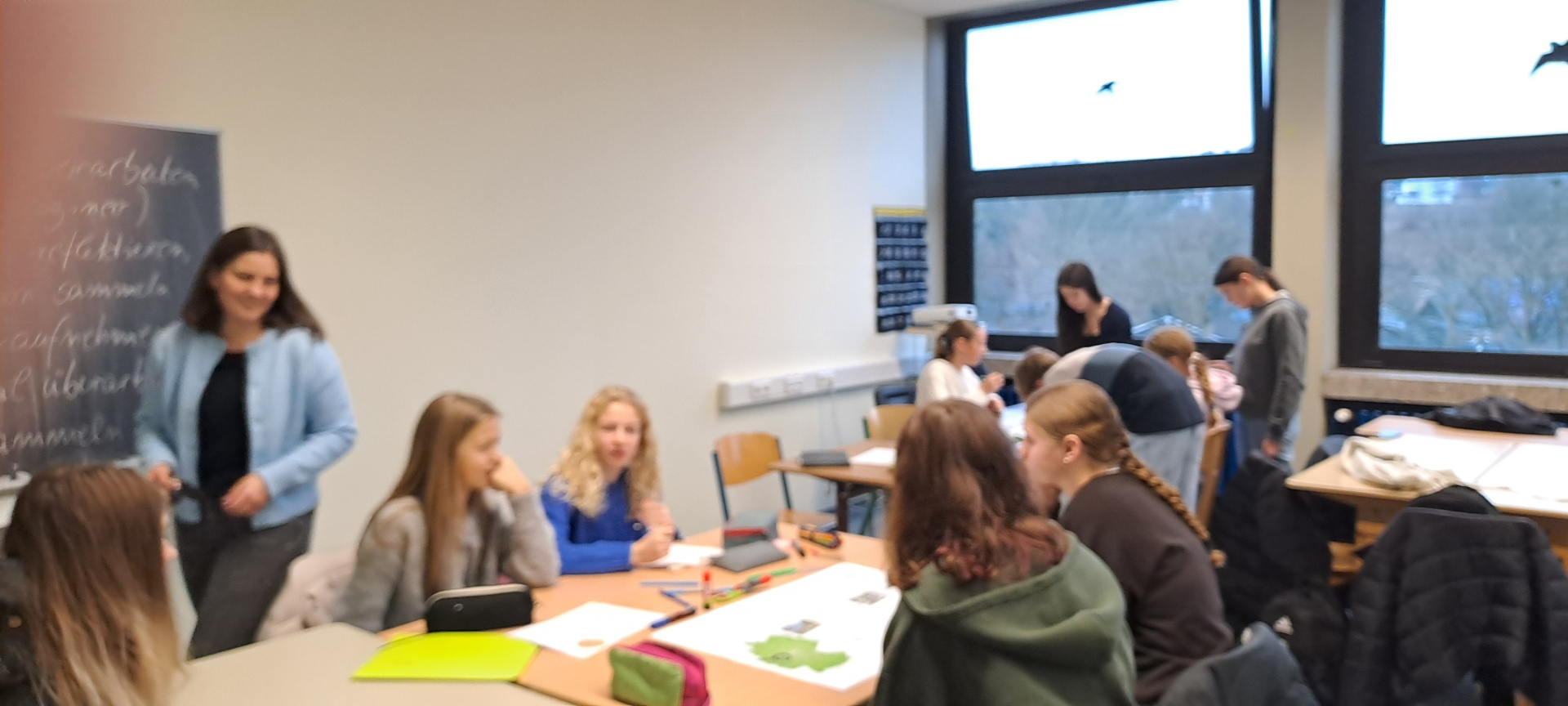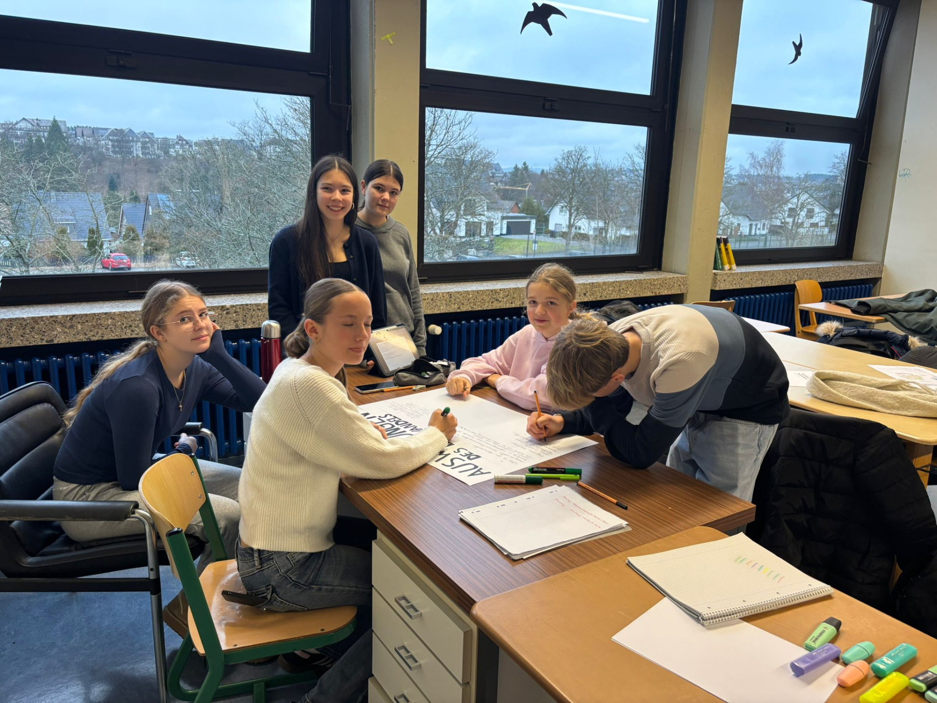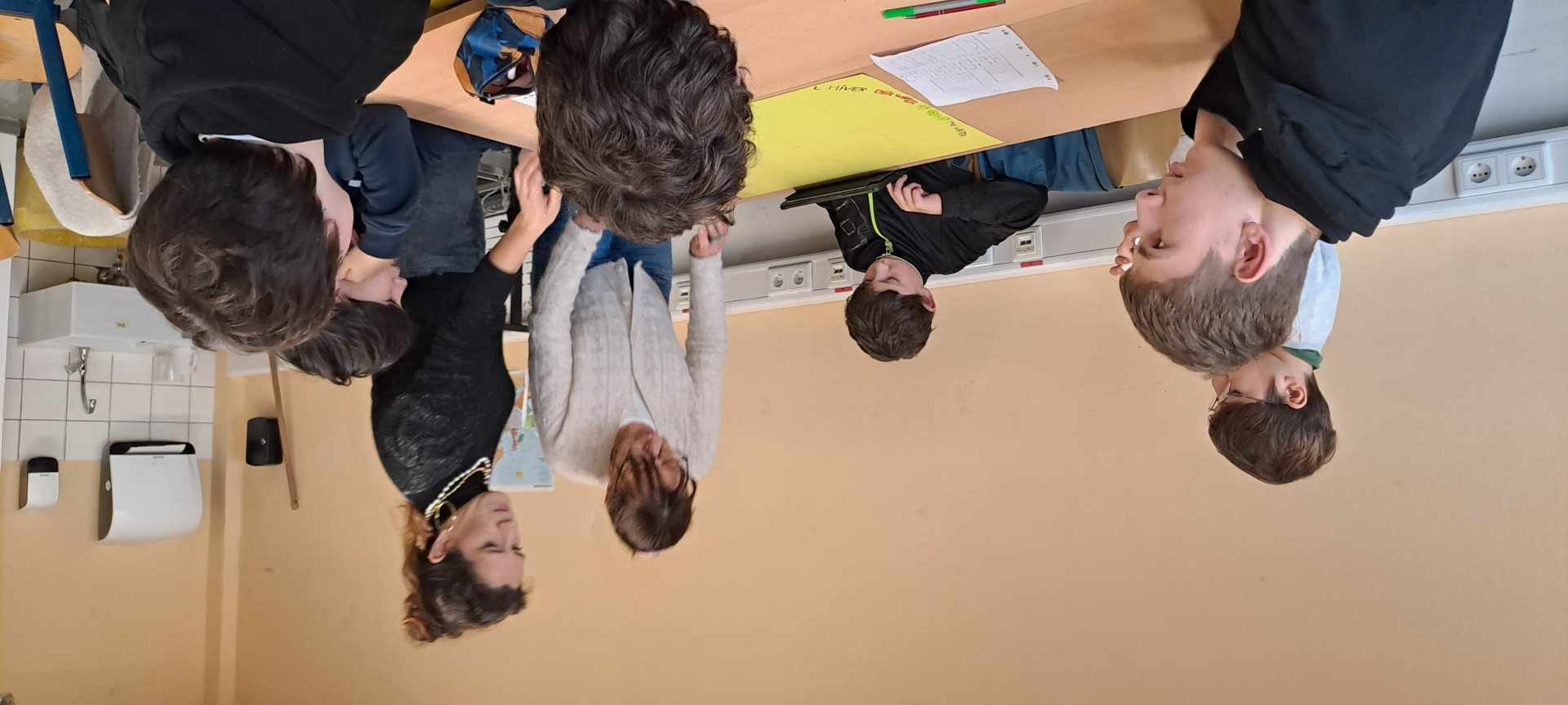 Une journée qui débute avec un goût de « dernière ». Ils ont tous à coeur d’en profiter. Le programme de la matinée est la réalisation des affiches pour l’exposition « Winterberg, Winter, Berge, Tourismus, Wirtschaft und Umwelt », le logo de l’échange franco-allemand et un imagier en 4 langues « Französisch, Deutsch, Bretonisch und Englisch » pour les plus jeunes.