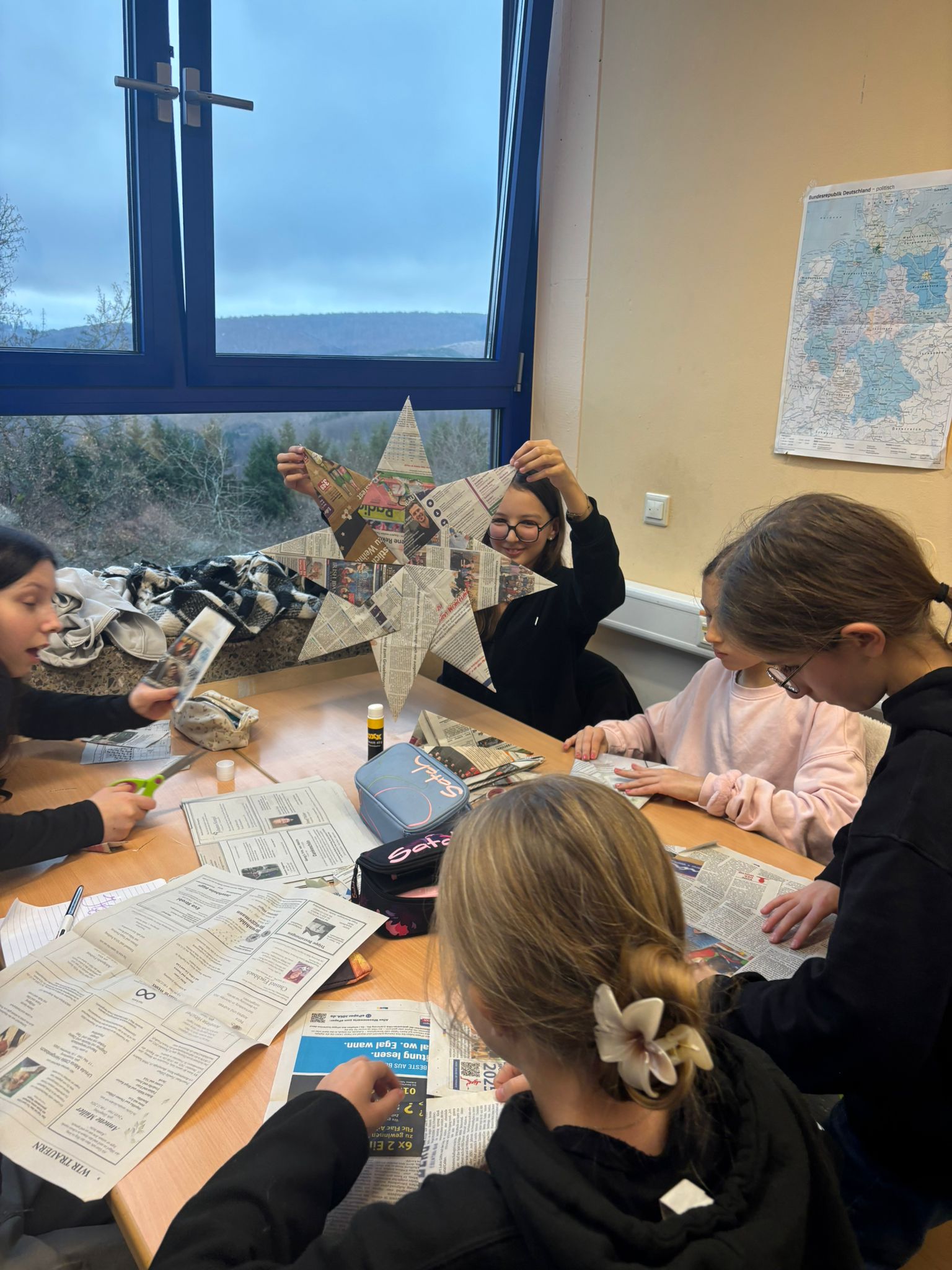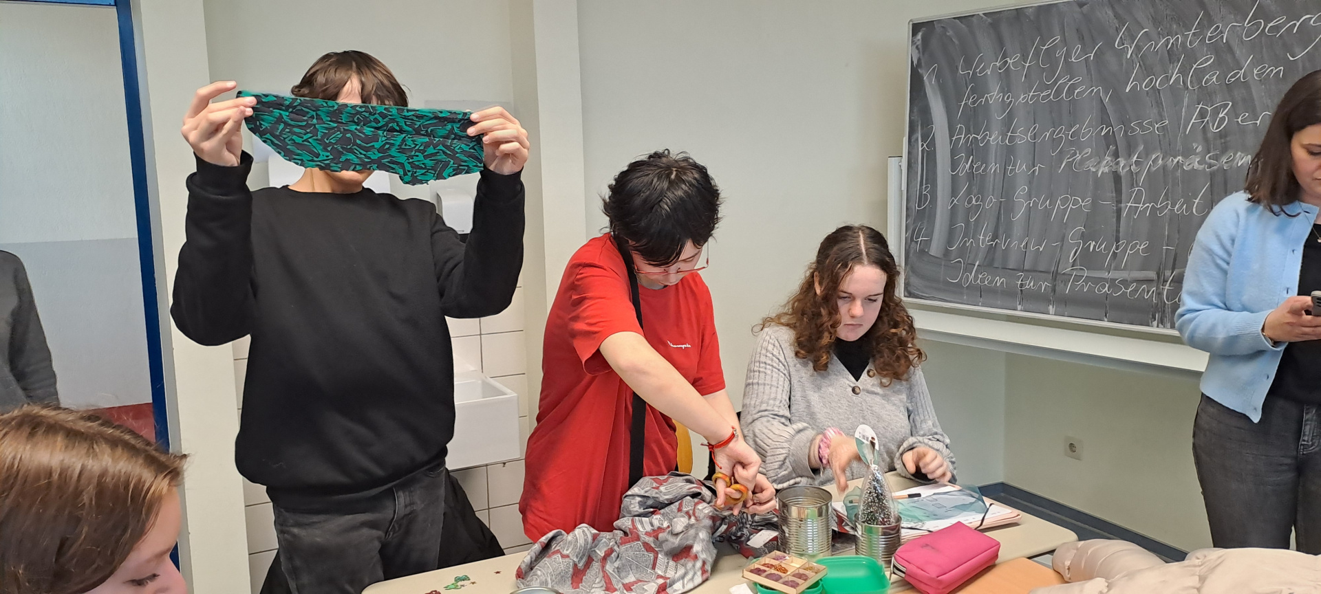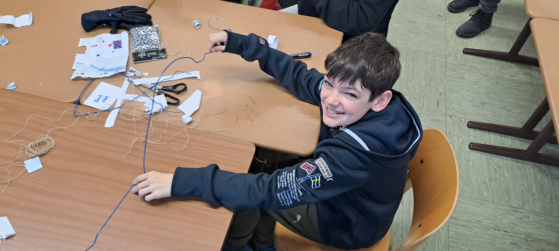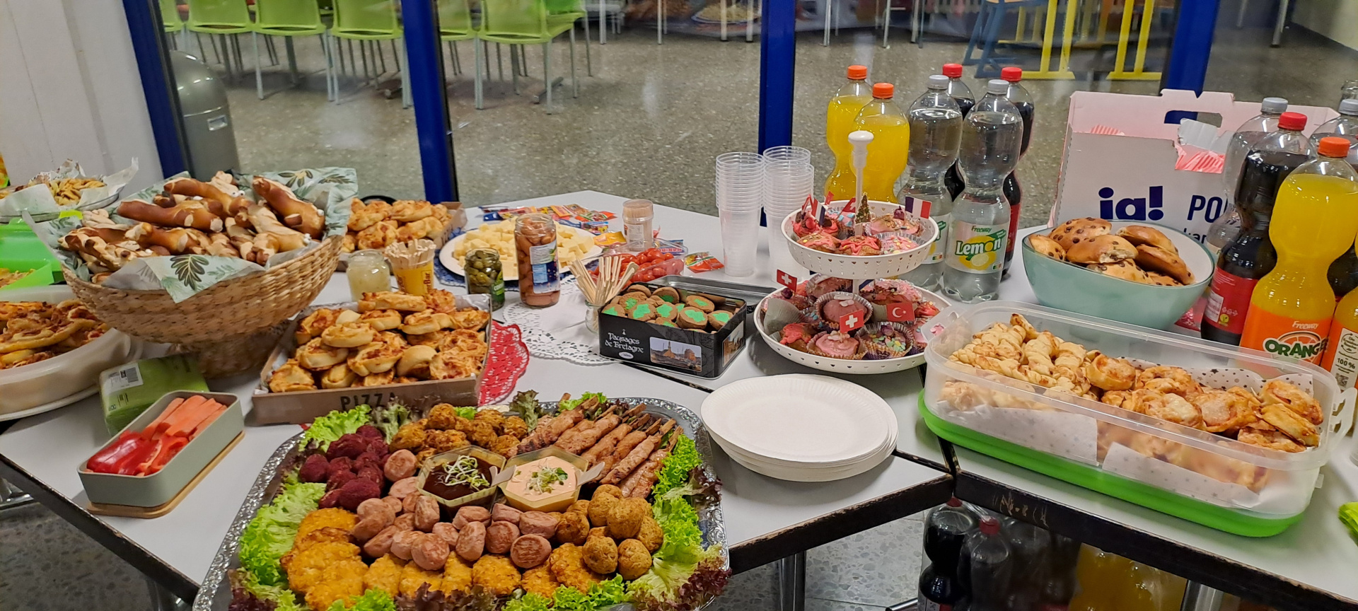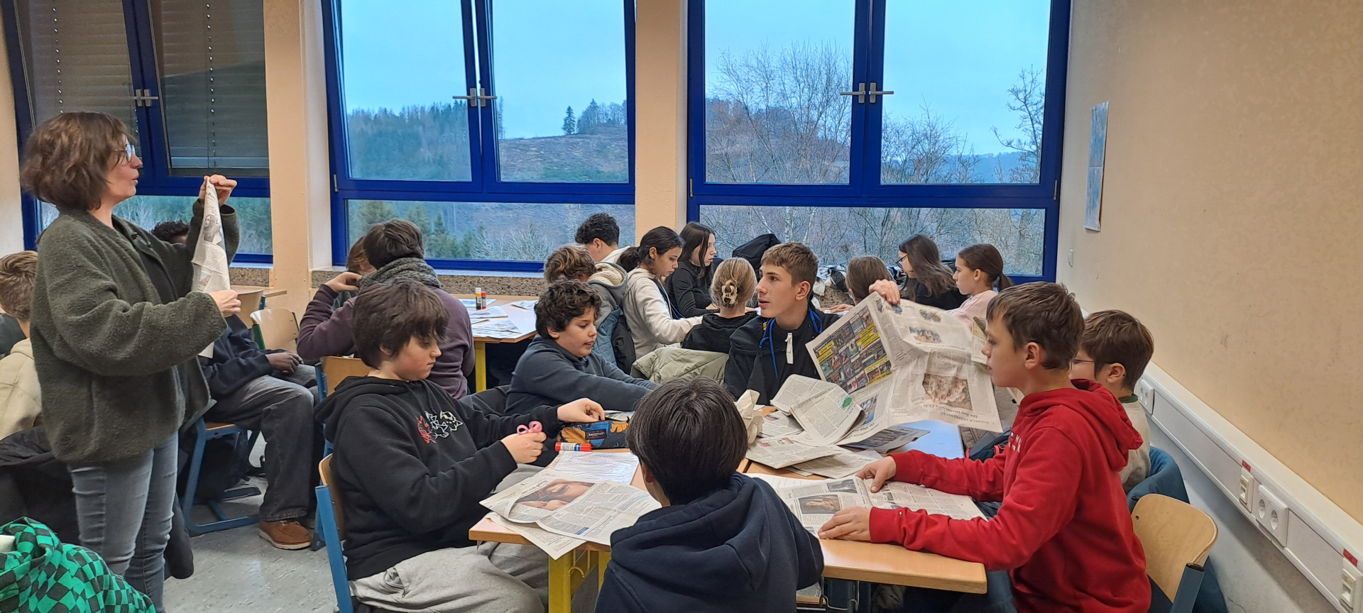 Cette après-midi, nous confectionnons des objets décoratifs de Noël à partir de boîtes de conserve, journaux, cintres en fer et calendriers… Puis, nous profitons des gourmandises préparées par les familles pour fêter cette superbe semaine emplie de rencontres, de découvertes…