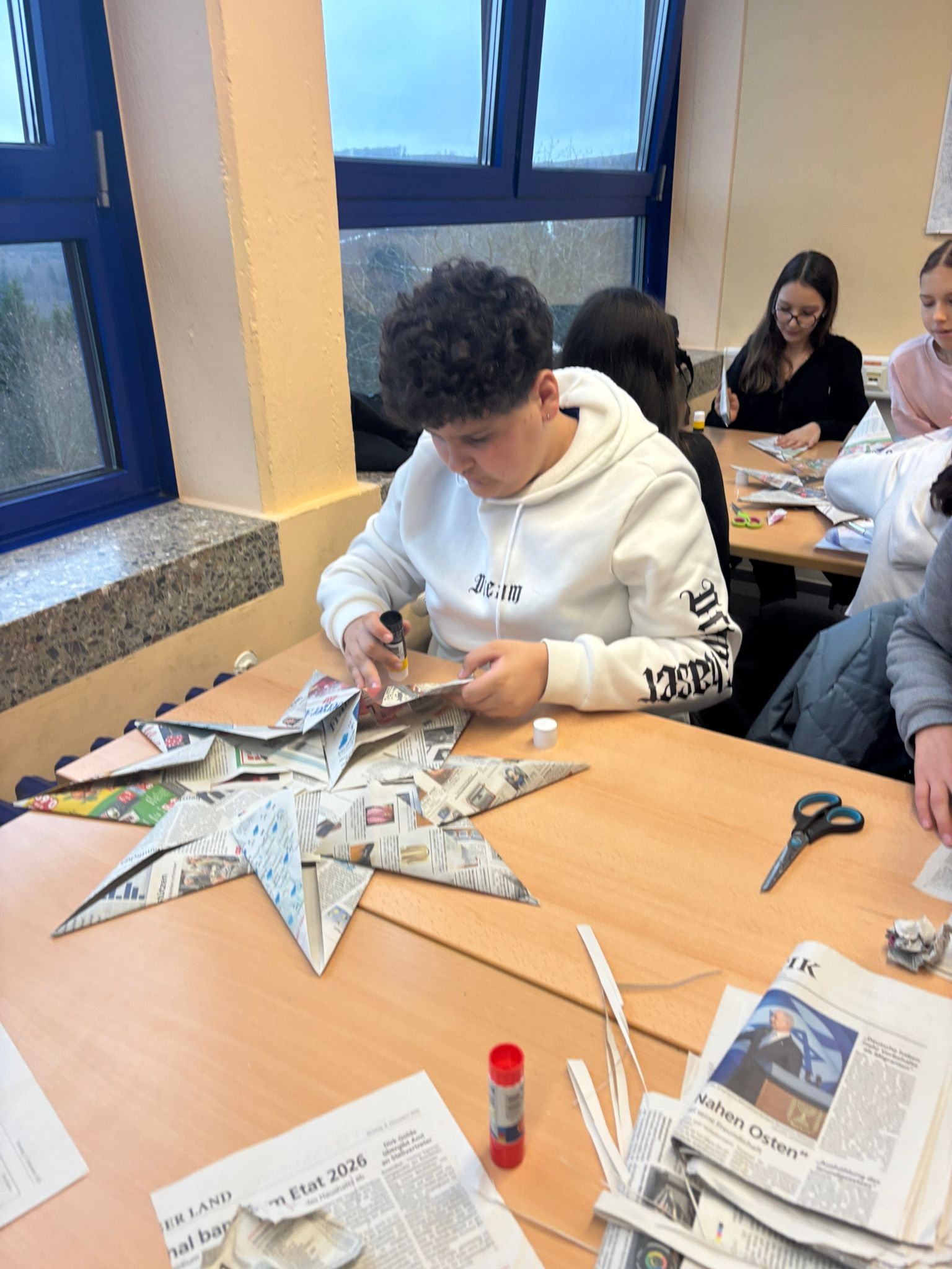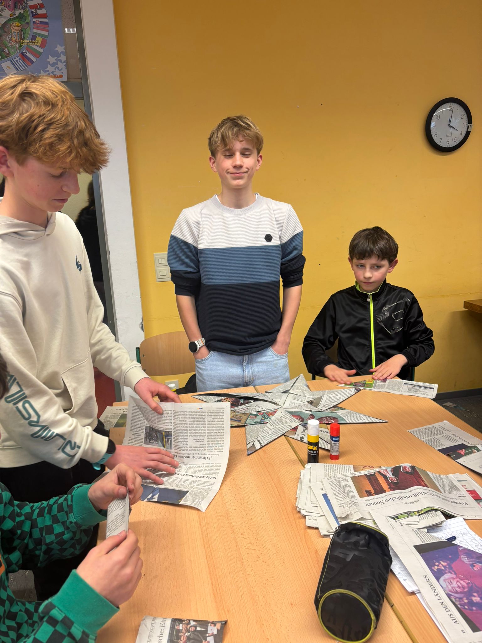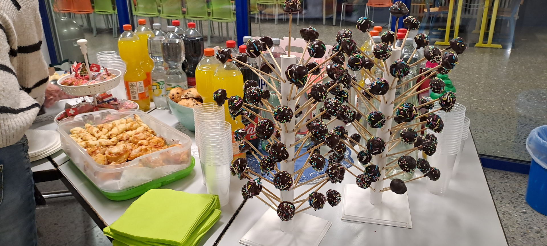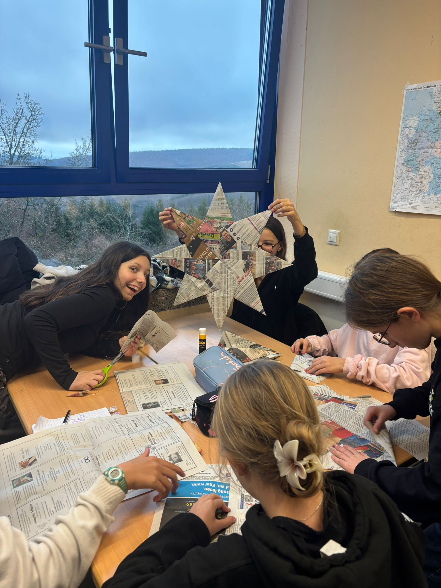 Cette après-midi, nous confectionnons des objets décoratifs de Noël à partir de boîtes de conserve, journaux, cintres en fer et calendriers… Puis, nous profitons des gourmandises préparées par les familles pour fêter cette superbe semaine emplie de rencontres, de découvertes…